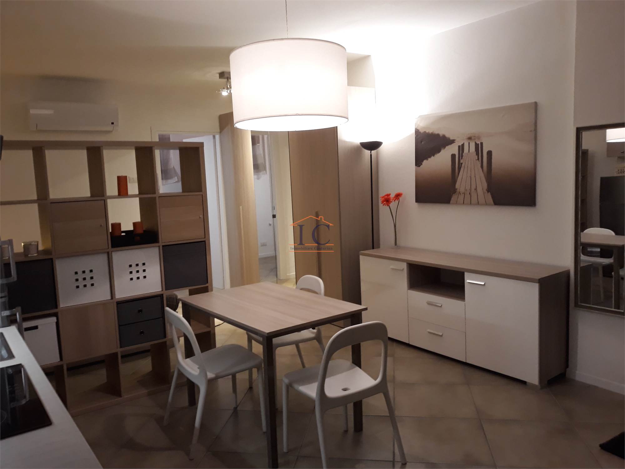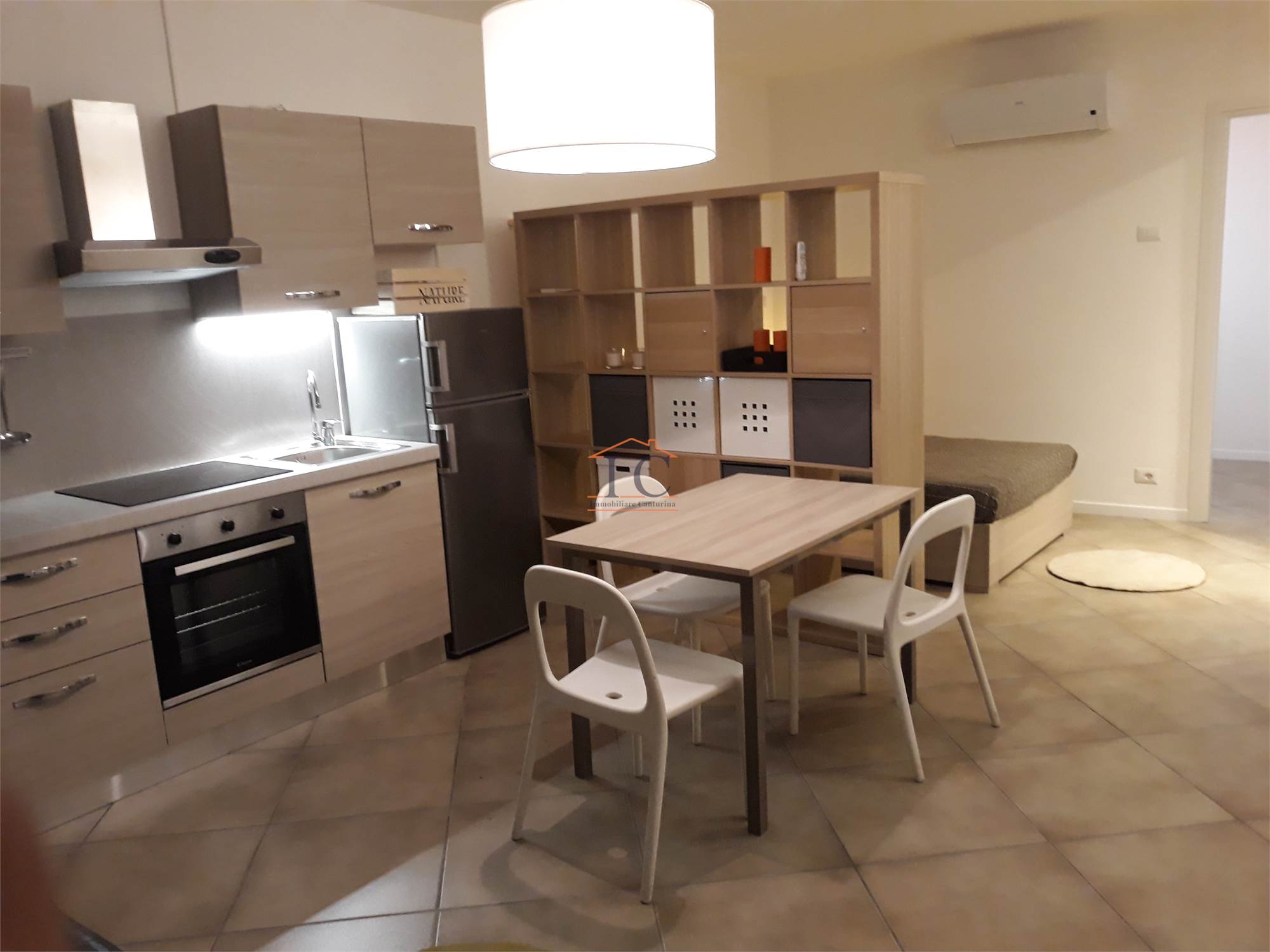 L’appartamento è composto da un unico ambiente funzionale e ben organizzato, dotato di letto a una piazza e mezza, ideale per una persona. La soluzione è completa di aria condizionata, cucina con piastra a induzione, lavatrice e arredi moderni.